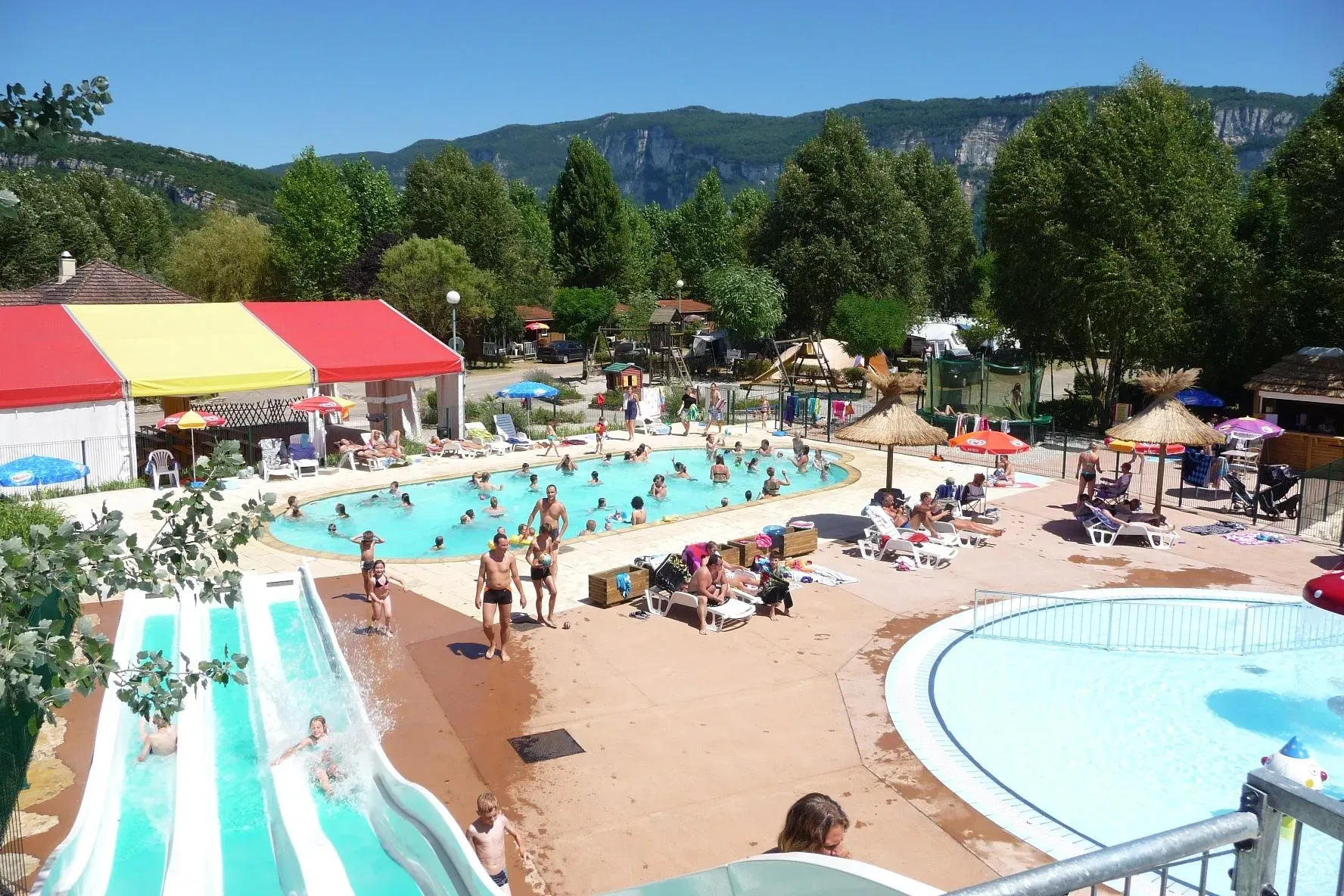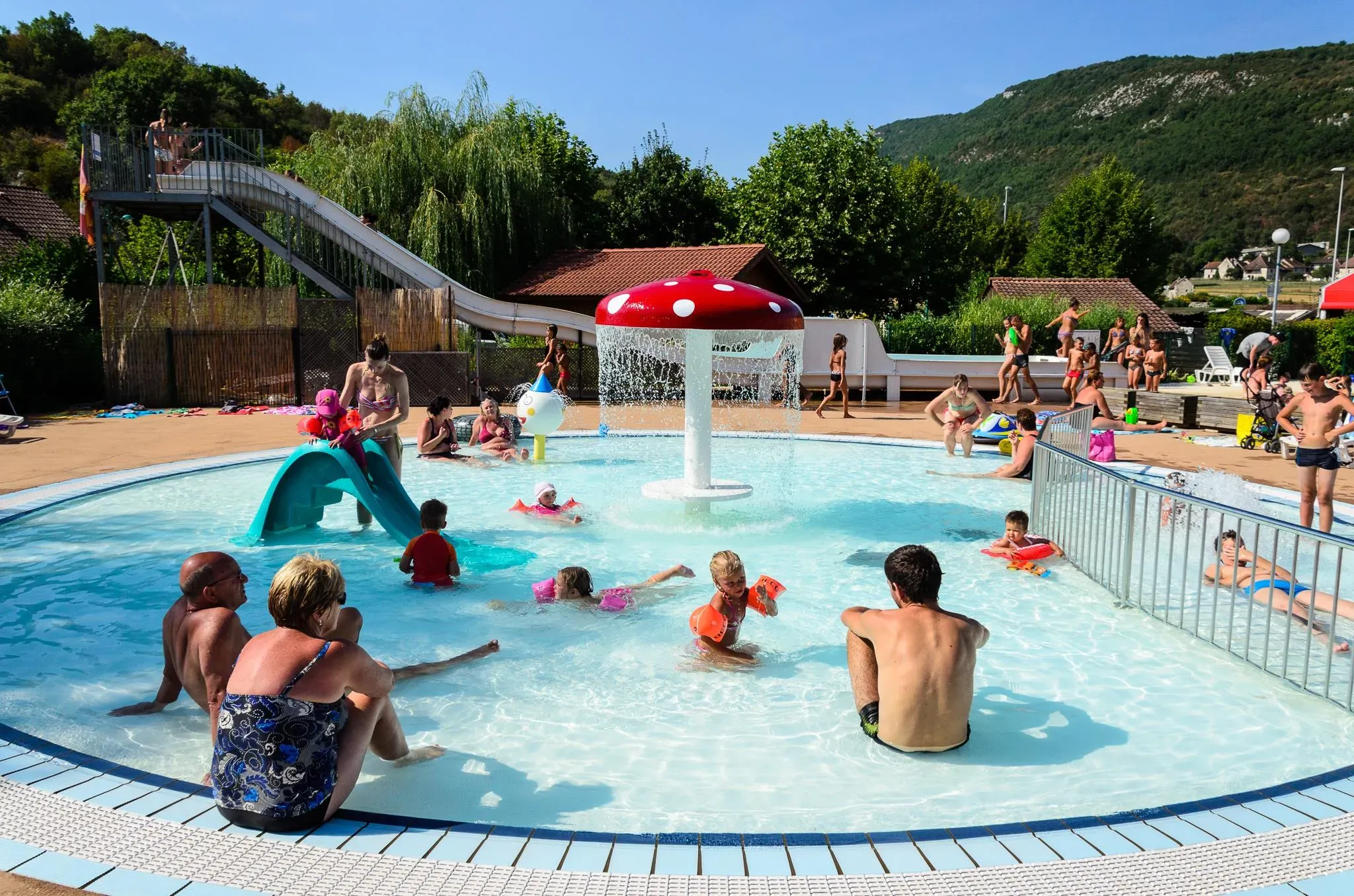 - Area acquatica con scivolo, piscina con area balneoterapica e piscina per bambini.